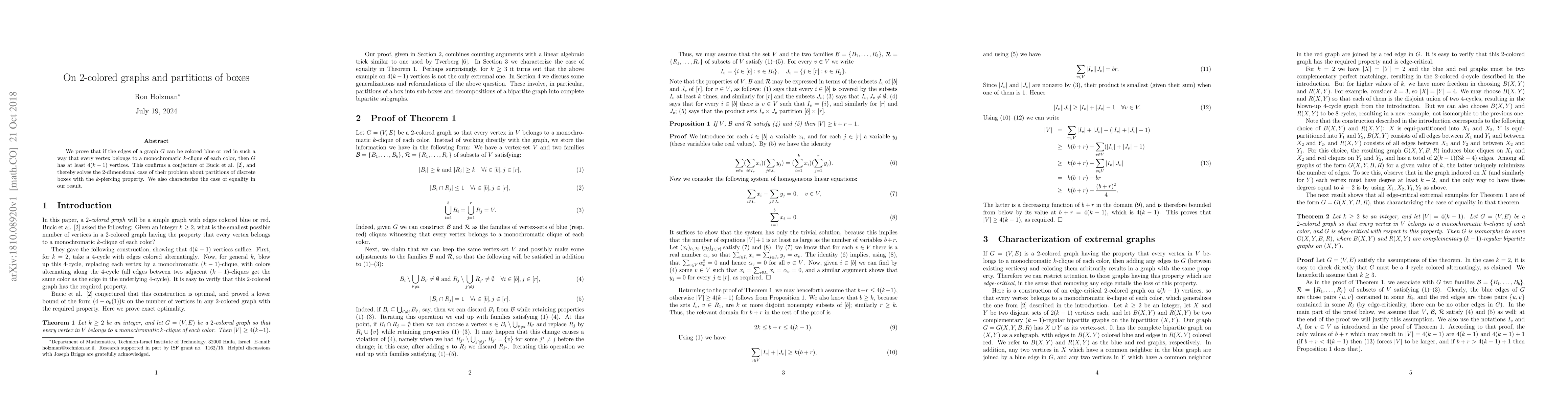 The paper presents a proof confirming a conjecture about the minimum number of vertices in 2-colored graphs with specific clique properties, along with a characterization of the equality case.