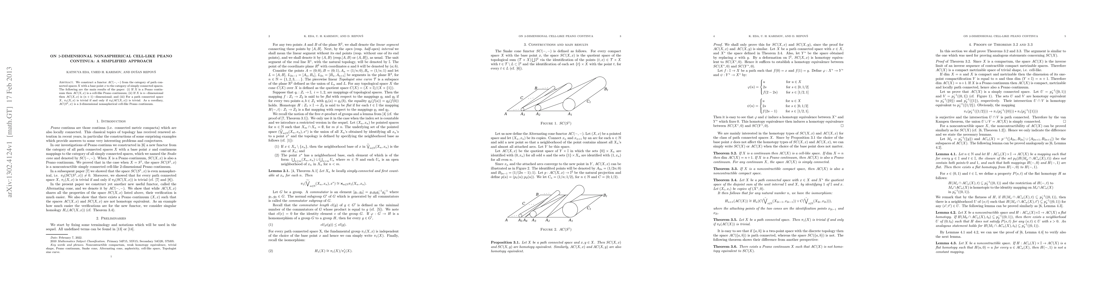 We construct a functor $AC(-,-)$ from the category of path connected spaces $X$ with a base point $x$ to the category of simply connected spaces. The following are the main results of the paper: (i) If $X$ is a Peano continuum then $AC(X,x)$ is a cell-like Peano continuum; (ii) If $X$ is $n-$dimensional then $AC(X, x)$ is $(n+1)-$dimensional; and (iii) For a path connected space $X$, $\pi_1(X,x)$ is trivial if and only if $\pi_2(AC(X, x))$ is trivial. As a corollary, $AC(S^1, x)$ is a 2-dimensional nonaspherical cell-like Peano continuum.