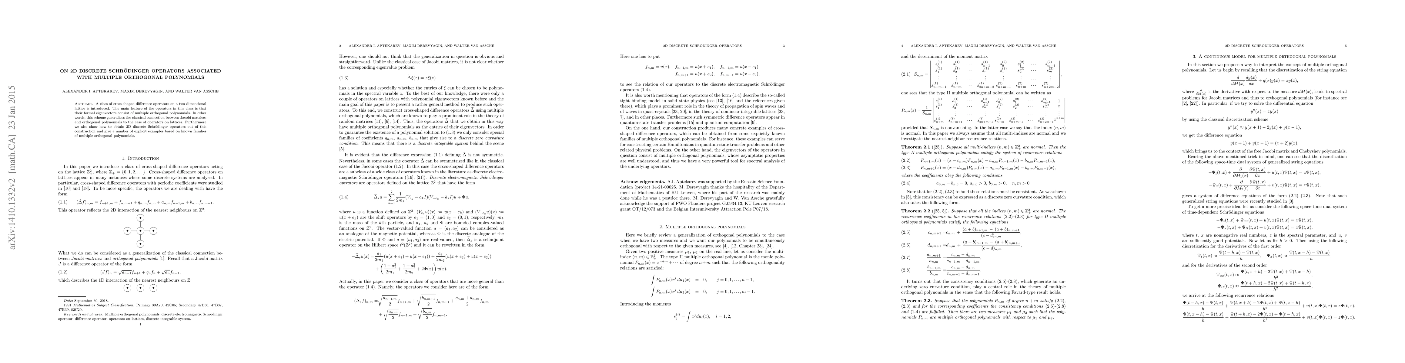 This paper introduces a class of 2D discrete Schrödinger operators defined on a lattice, whose formal eigenvectors are multiple orthogonal polynomials. It generalizes the classical link between Jacobi matrices and orthogonal polynomials to lattice operators and provides explicit examples based on known families of multiple orthogonal polynomials.