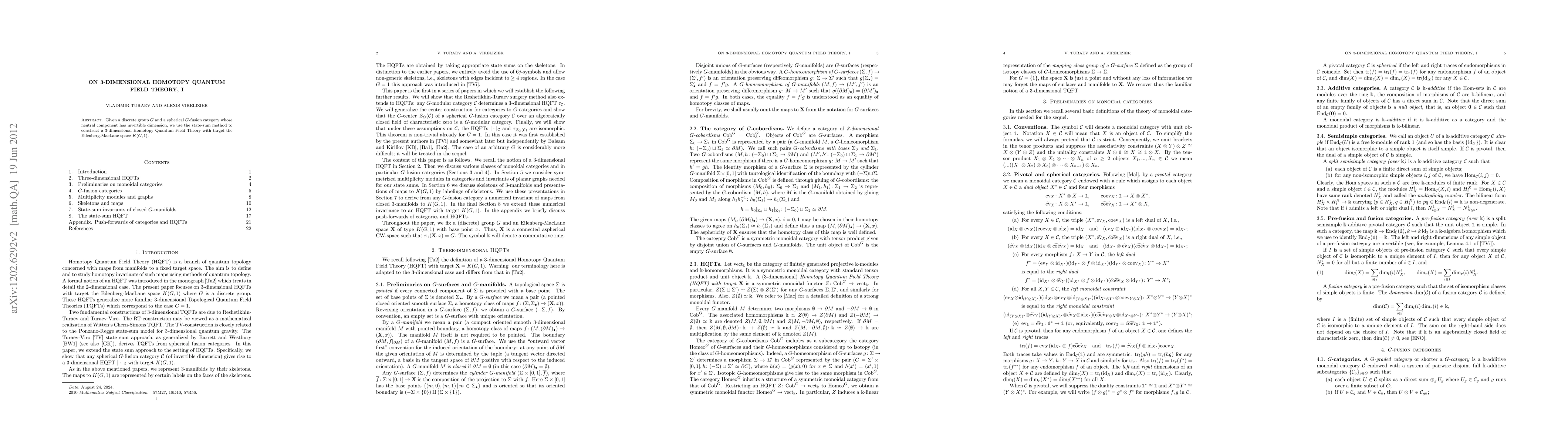 Given a discrete group G and a spherical G-fusion category whose neutral component has invertible dimension, we use the state-sum method to construct a 3-dimensional Homotopy Quantum Field Theory (HQFT) with target the Eilenberg-MacLane space K(G,1).