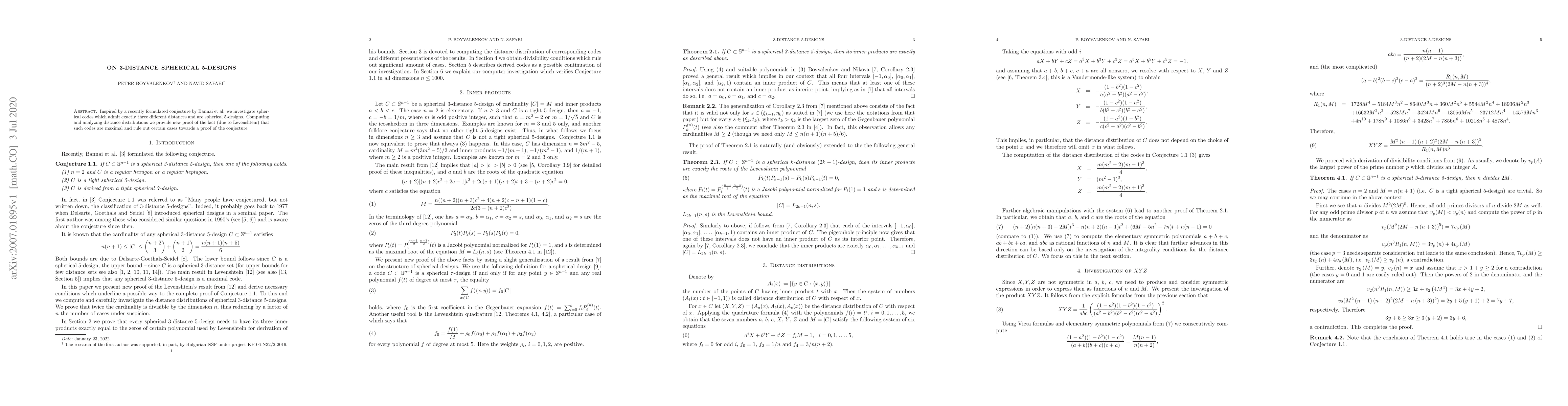 The research provides a new characterization of spherical 3-distance 5-designs using the Levenshtein framework, and establishes conditions for a code to be maximal in terms of divisibility and congruences.