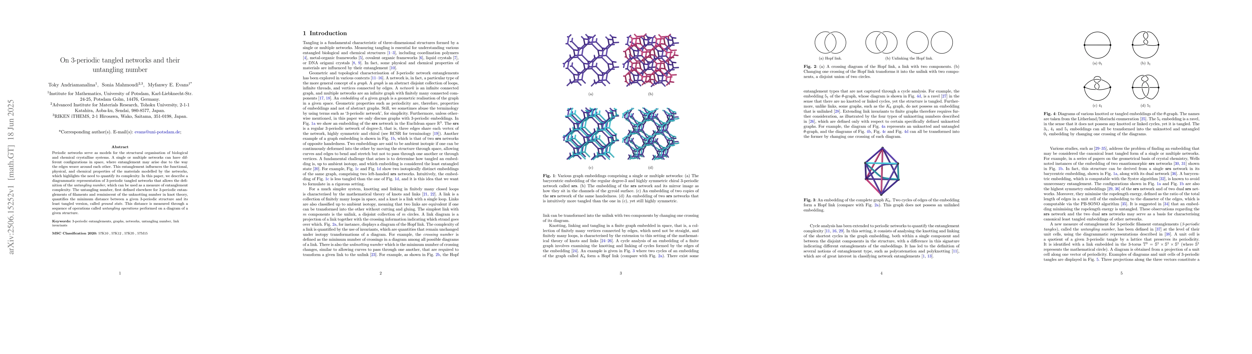 Periodic networks serve as models for the structural organisation of biological and chemical crystalline systems. A single or multiple networks can have different configurations in space, where entanglement may arise due to the way the edges weave around each other. This entanglement influences the functional, physical, and chemical properties of the materials modelled by the networks, which highlights the need to quantify its complexity. In this paper, we describe a diagrammatic representation of 3-periodic tangled networks that allows the definition of the untangling number, which can be used as a measure of entanglement complexity. The untangling number, first defined elsewhere for 3-periodic entanglements of filaments and reminiscent of the unknotting number in knot theory, quantifies the minimum distance between a given 3-periodic structure and its least tangled version, called ground state. This distance is measured through a sequence of operations called untangling operations performed on a diagram of a given structure.