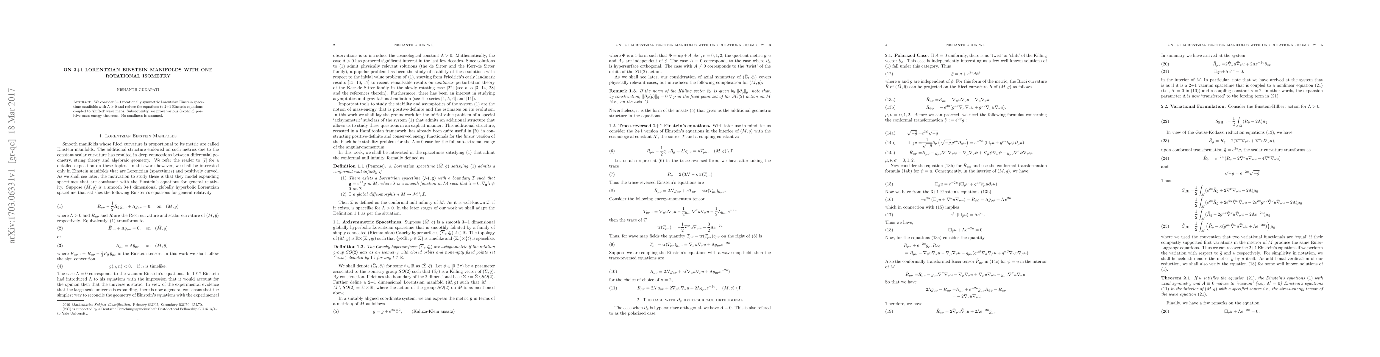 We consider 3+1 rotationally symmetric Lorentzian Einstein spacetime manifolds with $\Lambda >0$ and reduce the equations to 2+1 Einstein equations coupled to `shifted' wave maps. Subsequently, we prove various (explicit) positive mass-energy theorems. No smallness is assumed.