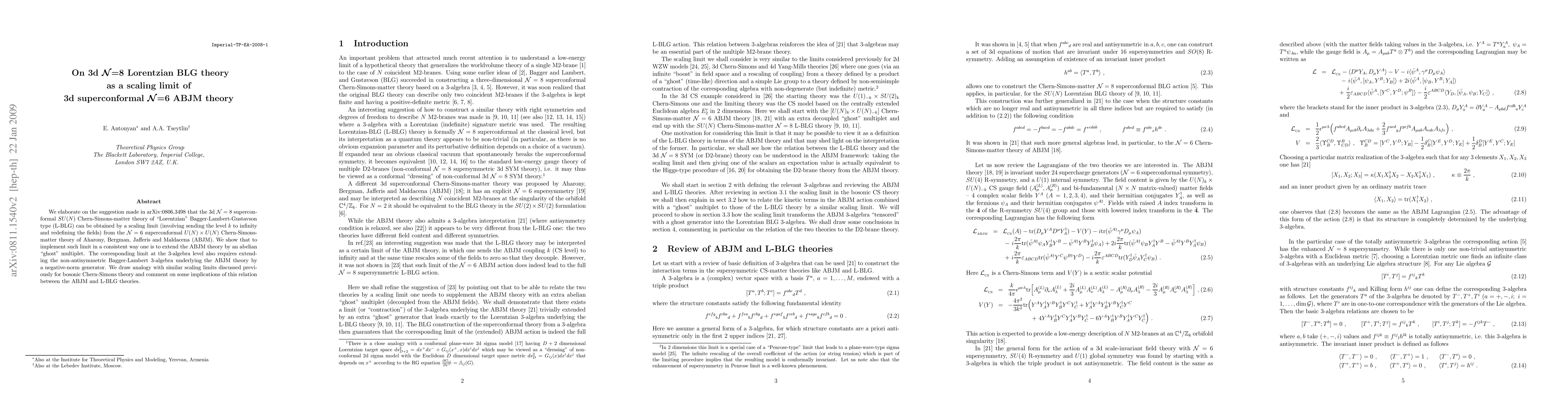 This paper explores the scaling limit that transforms the 3d N=6 ABJM superconformal Chern-Simons-matter theory into the 3d N=8 L-BLG theory, requiring extensions of both the ABJM theory and its underlying non-antisymmetric 3-algebra. The authors draw parallels with similar scaling limits in bosonic Chern-Simons theory and discuss implications of this relationship.