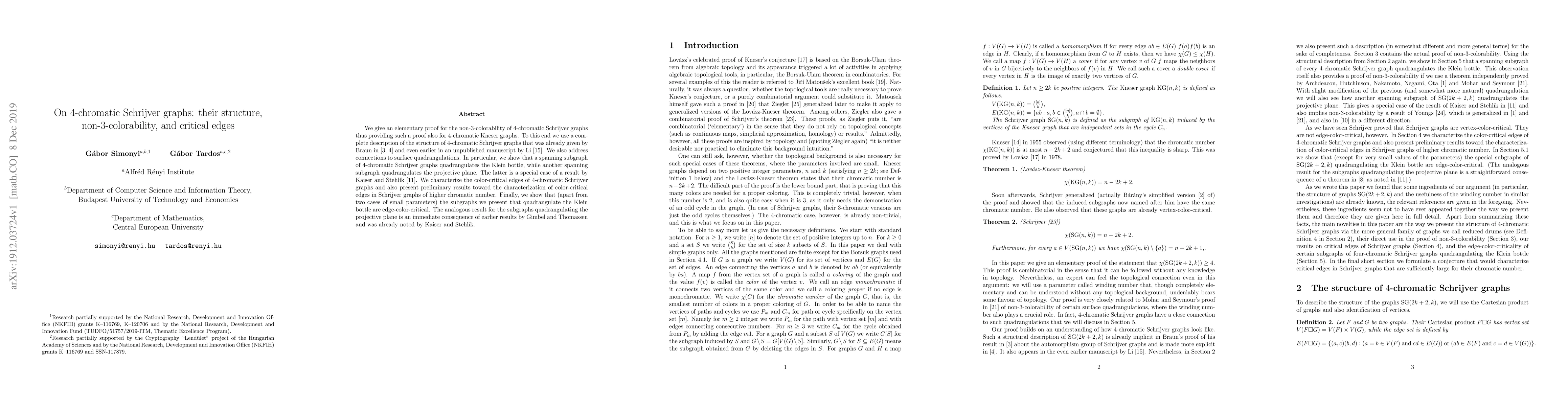 Researchers proved that 4-chromatic Schrijver graphs cannot be colored with just 3 colors and identified connections to surface quadrangulations and critical edges.