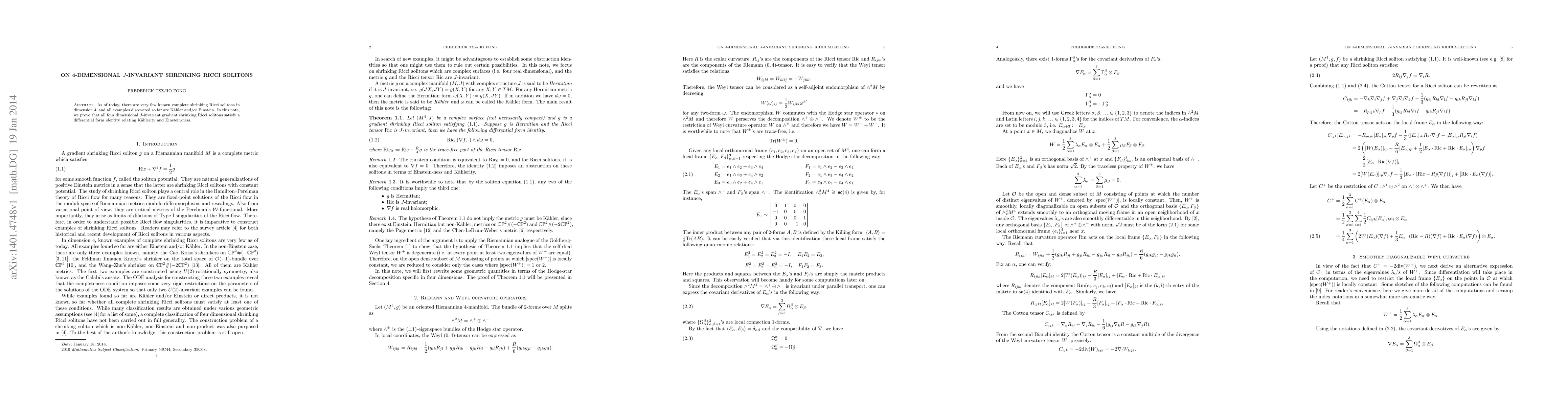 The paper derives an alternative expression for the Cotton tensor and uses it to establish a differential form identity involving the eigenvalues of the Weyl curvature tensor for 4-dimensional J-invariant shrinking Ricci solitons.