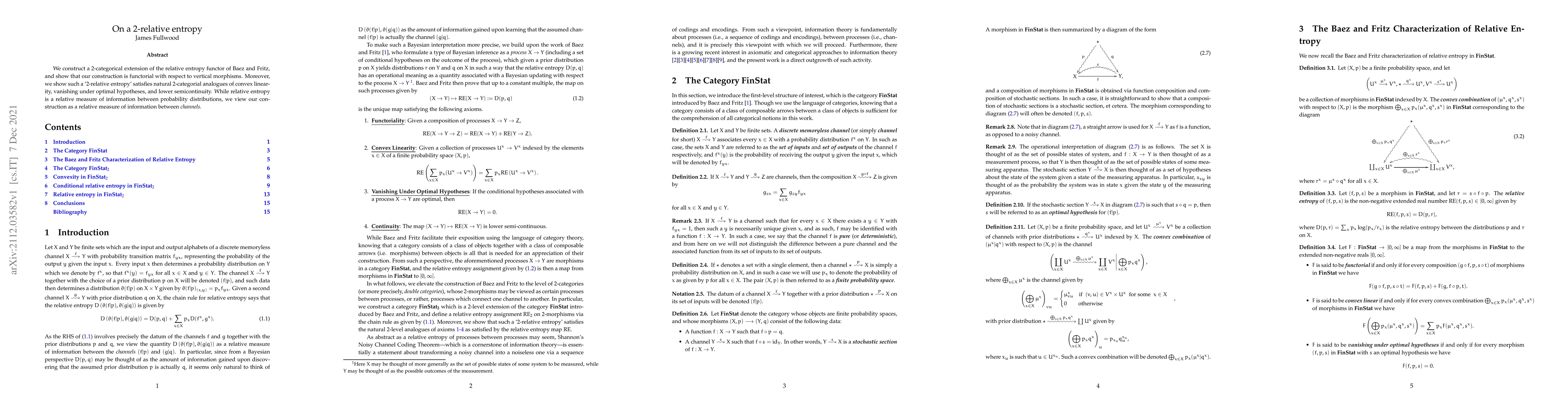Researchers developed a new measure of information called 2-relative entropy, which is a relative measure of information between channels, and shows properties similar to convex linearity and lower semicontinuity.