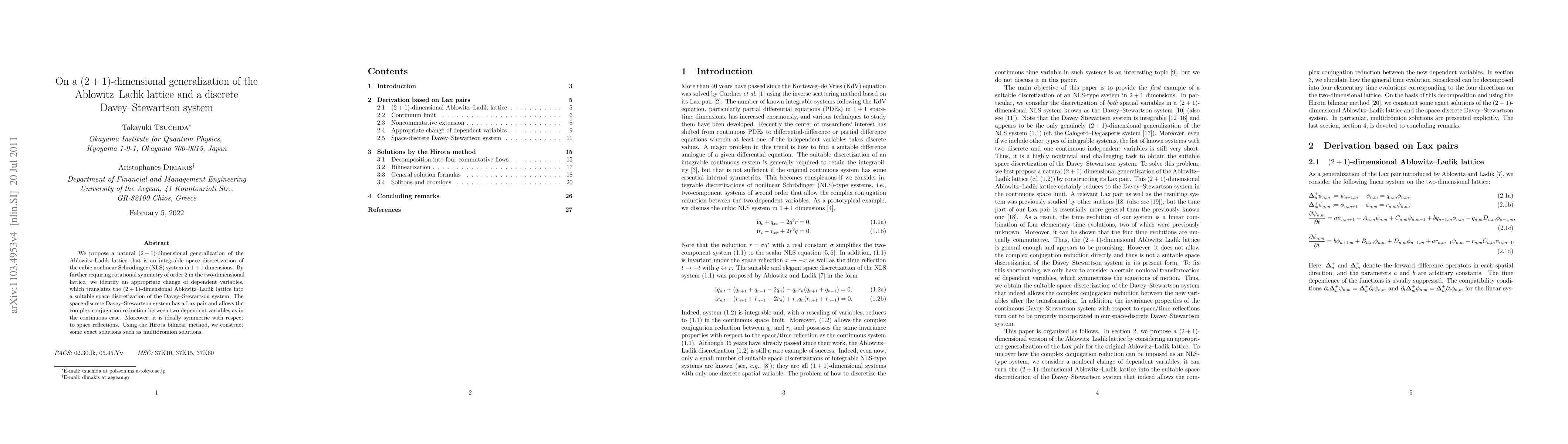 This paper generalizes the Ablowitz-Ladik lattice into a (2+1)-dimensional integrable system, transforming it into a space discretization of the Davey-Stewartson system via rotational symmetry. Exact solutions, including multidromion solutions, are derived using the Hirota bilinear method.