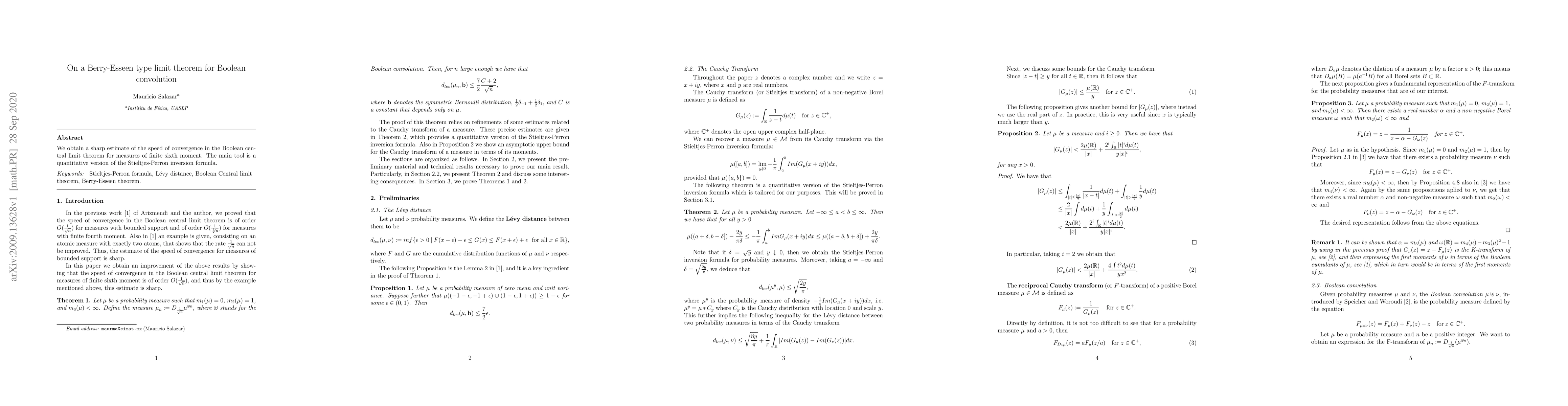 We obtain a sharp estimate of the speed of convergence in the Boolean central limit theorem for measures of finite sixth moment. The main tool is a quantitative version of the Stieltjes-Perron inversion formula.