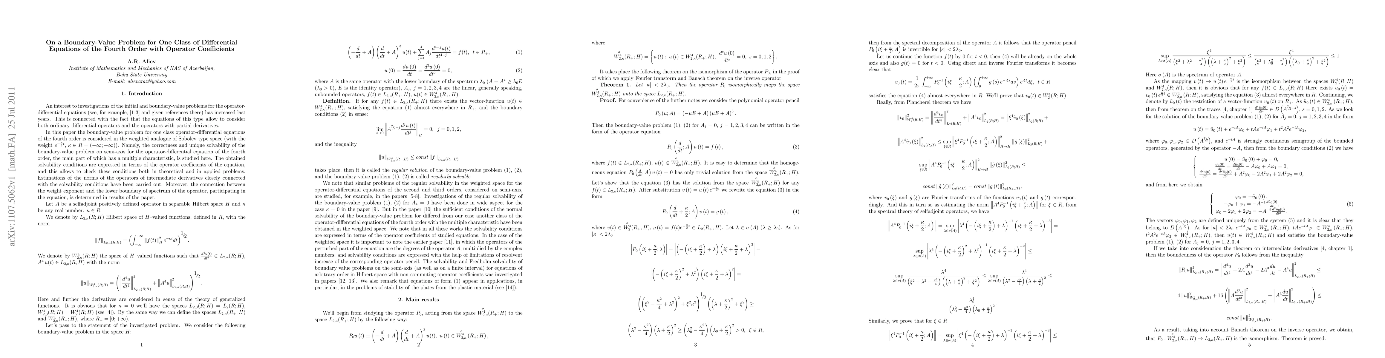 This paper investigates a boundary-value problem for fourth-order differential equations with operator coefficients in Sobolev type weighted space, proving the problem's correctness and unique solvability, and establishing solvability conditions linked to the operator coefficients.