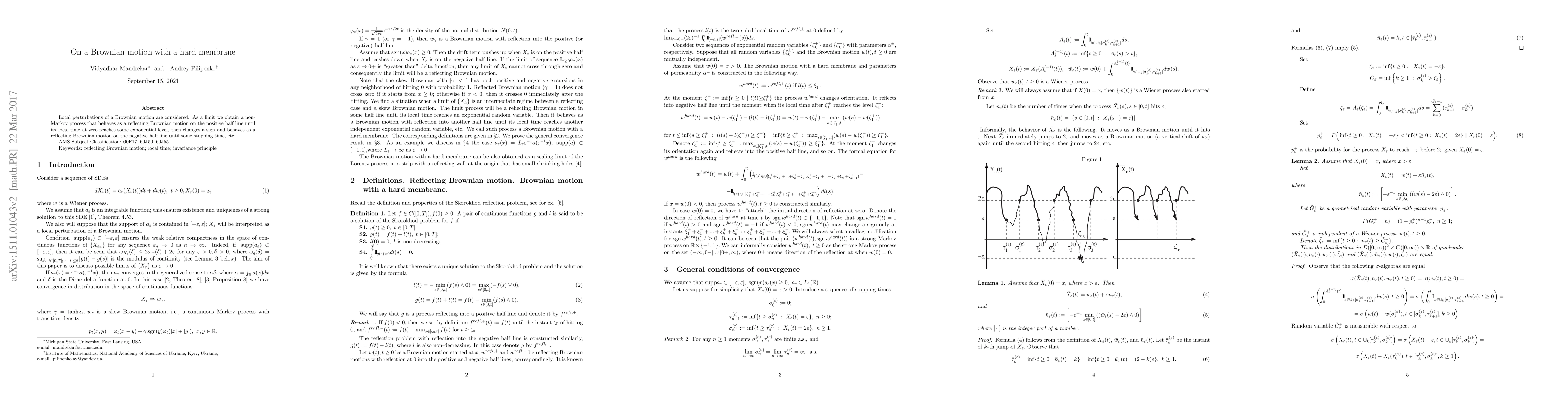 Local perturbations of a Brownian motion are considered. As a limit we obtain a non-Markov process that behaves as a reflected Brownian motion on the positive half line until its local time at zero reaches some exponential level, then changes a sign and behaves as a reflected Brownian motion on the negative half line until some stopping time, etc.