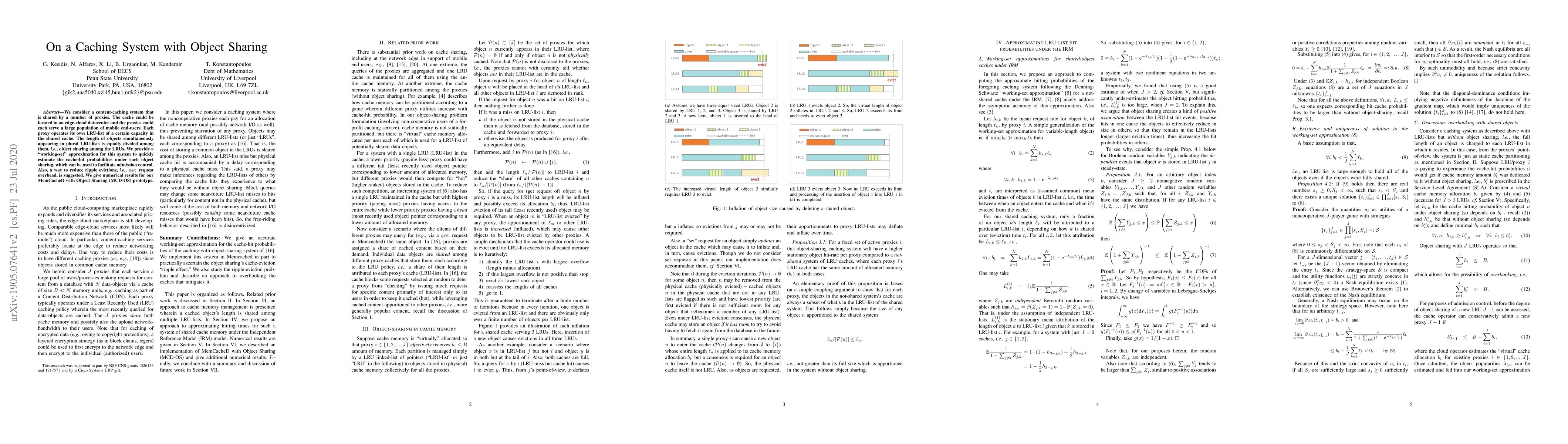 This paper explores a shared content-caching system with multiple proxies using individual LRU caches and object sharing among them. It proposes a "working-set" approximation to estimate cache-hit probabilities and suggests a method to reduce ripple evictions, supported by results from the MCD-OS prototype.
