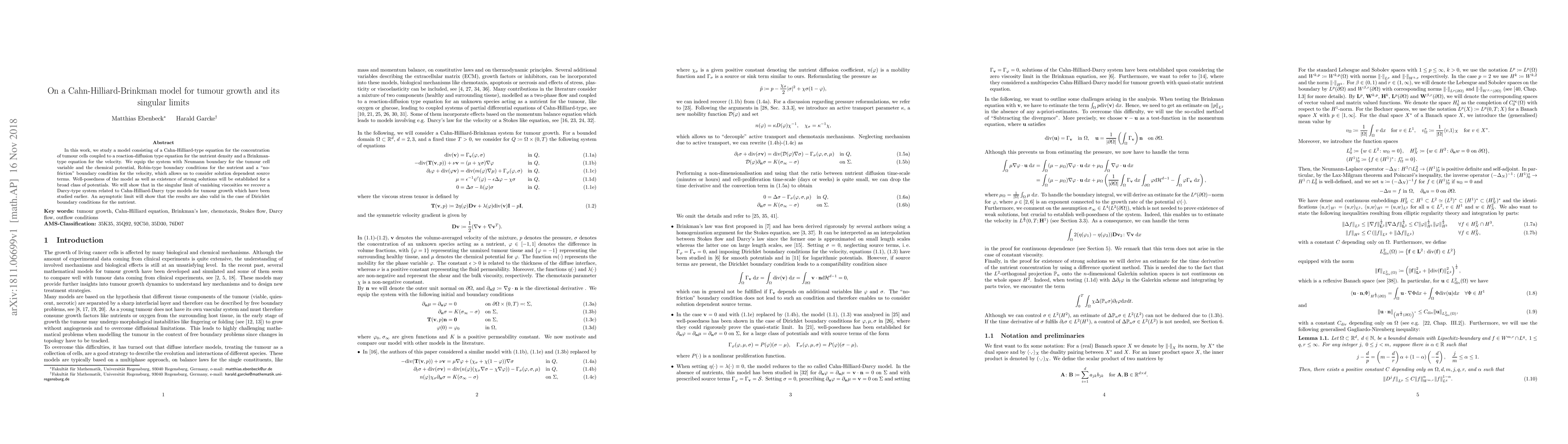 In this work, we study a model consisting of a Cahn-Hilliard-type equation for the concentration of tumour cells coupled to a reaction-diffusion type equation for the nutrient density and a Brinkman-type equation for the velocity. We equip the system with Neumann boundary for the tumour cell variable and the chemical potential, Robin-type boundary conditions for the nutrient and a "no-friction" boundary condition for the velocity, which allows us to consider solution dependent source terms. Well-posedness of the model as well as existence of strong solutions will be established for a broad class of potentials. We will show that in the singular limit of vanishing viscosity we recover a Darcy-type system related to Cahn-Hilliard-Darcy type models for tumour growth which have been studied earlier. An asymptotic limit will show that the results are also valid in the case of Dirichlet boundary conditions for the nutrient.