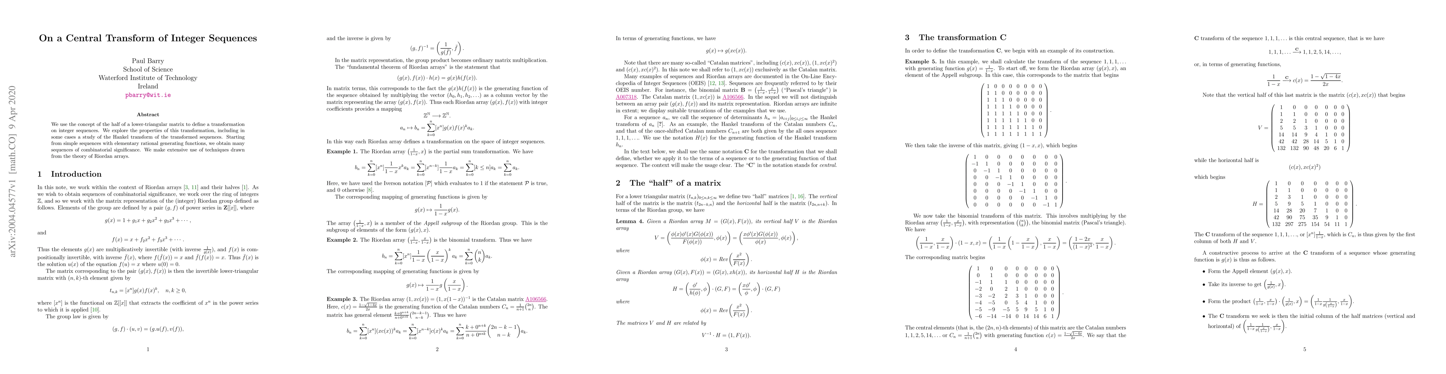 This paper introduces a transformation on integer sequences based on the concept of a lower-triangular matrix's half, exploring its properties and applying it to sequences with rational generating functions. It utilizes Riordan array techniques to derive sequences of combinatorial importance and examines the Hankel transform of these transformed sequences.