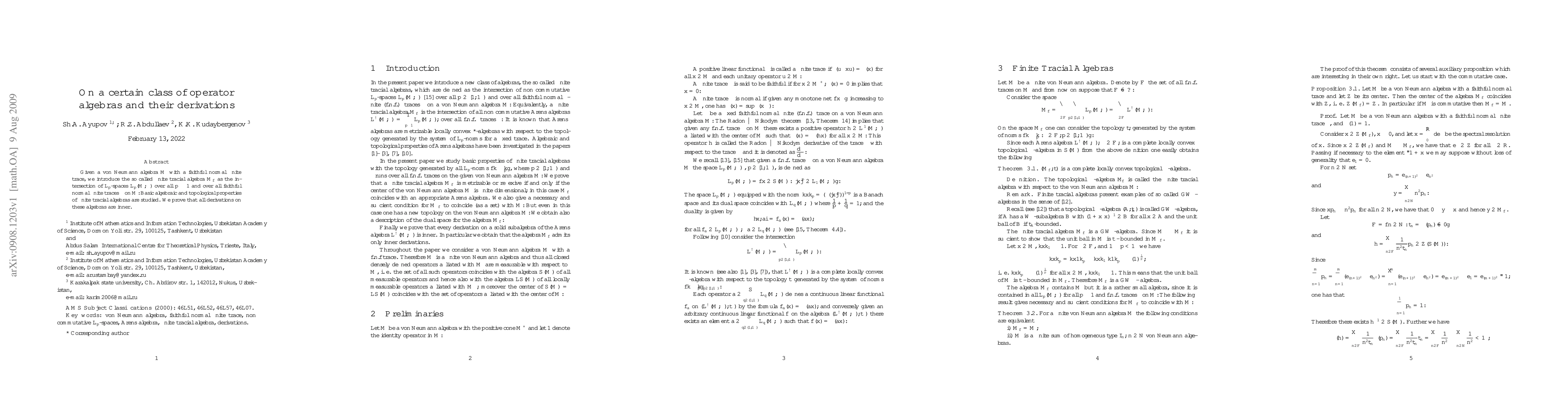 This paper introduces a new class of operator algebras called finite tracial algebras, which are derived from von Neumann algebras with specific properties. The research finds that all derivations on these algebras are inner, meaning they can be represented as multiplication by an element within the algebra.