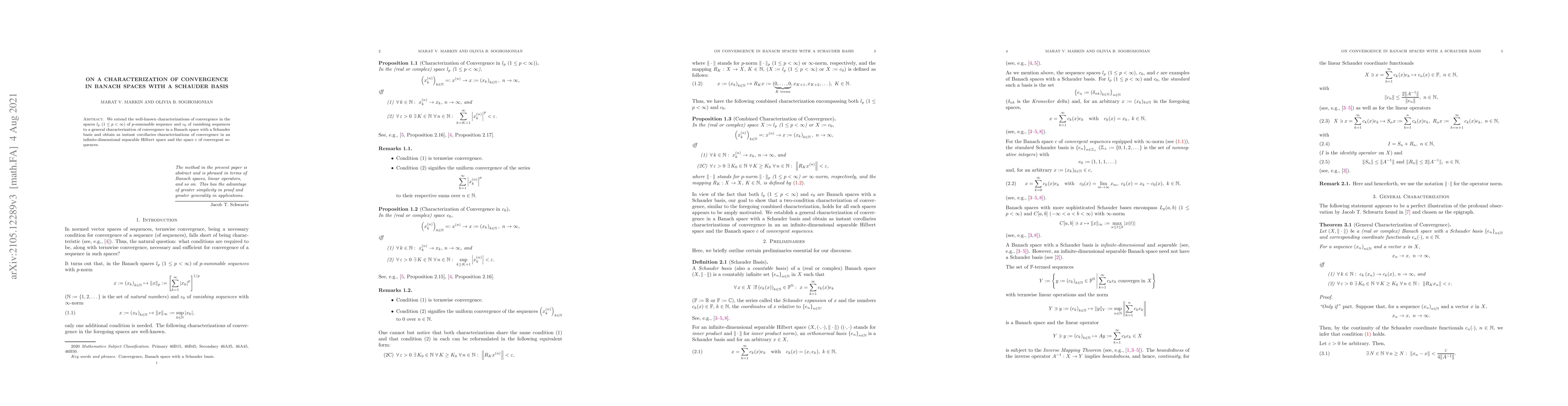 This research paper extends known characterizations of convergence in $l_p$ spaces to a general characterization for Banach spaces with Schauder bases, impacting convergence in infinite-dimensional separable Hilbert spaces and the space $c$. The results provide new insights into convergence in a wide range of mathematical spaces.