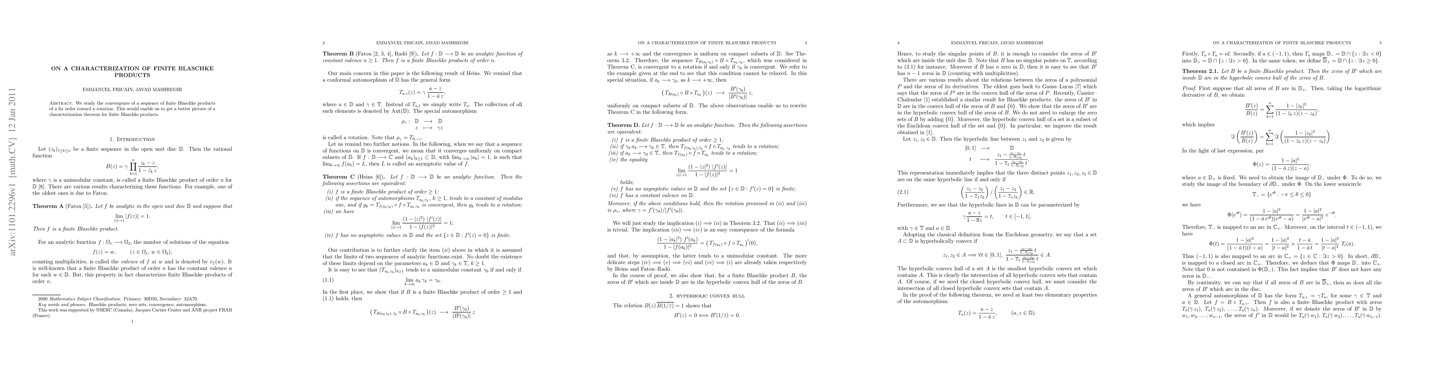 This research examines the convergence of finite Blaschke product sequences of fixed order towards a rotation, aiming to elucidate a characterization theorem for finite Blaschke products.