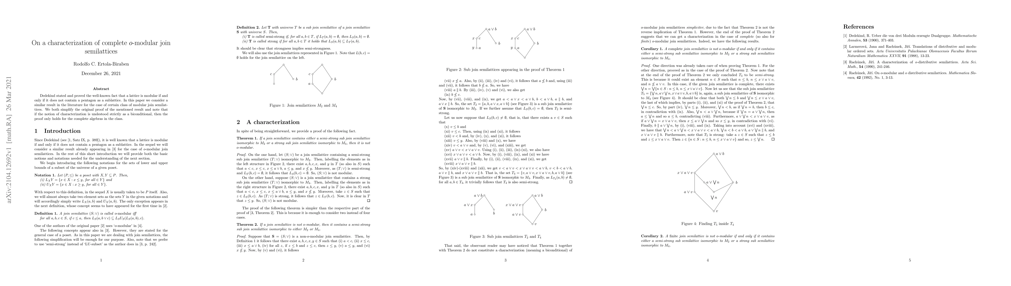 Dedekind stated and proved the well-known fact that a lattice is modular if and only if it does not contain a pentagon as a sublattice. In this paper we consider a similar result in the literature for the case of certain class of modular join semilattices. We both simplify the original proof of the mentioned result and note that if the notion of characterization is understood strictly as a biconditional, then the proof only holds for the complete algebras in the class.