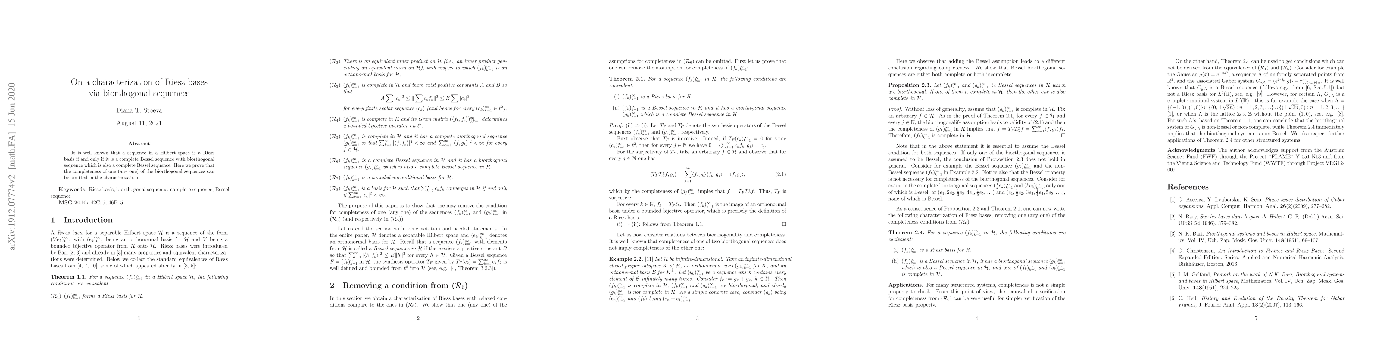 Summary: This paper demonstrates that a sequence in a Hilbert space is a Riesz basis if it is a complete Bessel sequence with a biorthogonal sequence that is also a complete Bessel sequence, without requiring the completeness of the biorthogonal sequence itself.