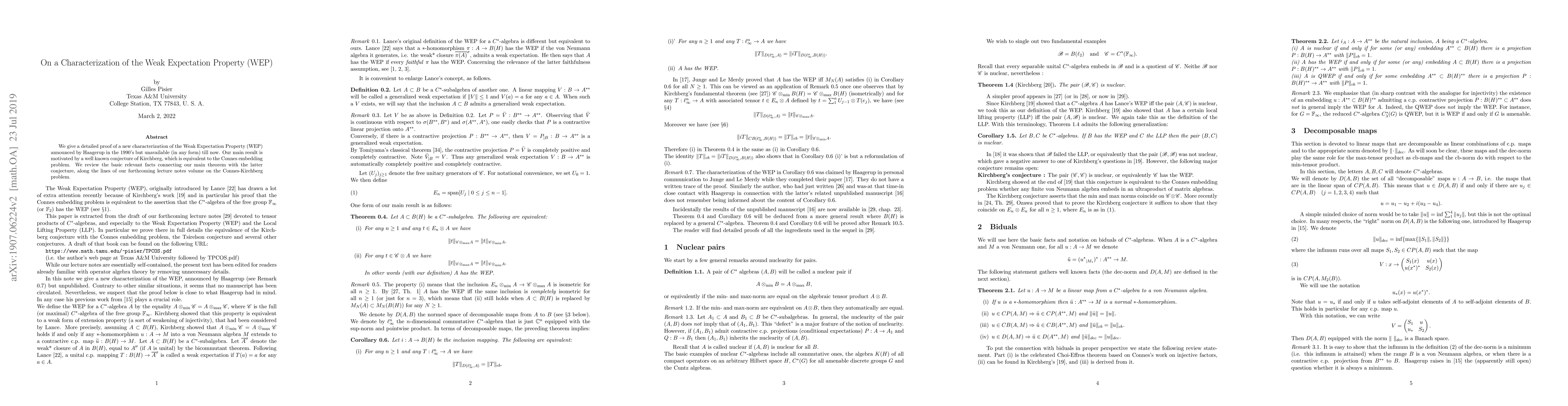 Researchers provide a new characterization of the Weak Expectation Property (WEP), a concept in mathematical physics that relates to a long-standing conjecture about the Connes embedding problem, which remains unsolved.