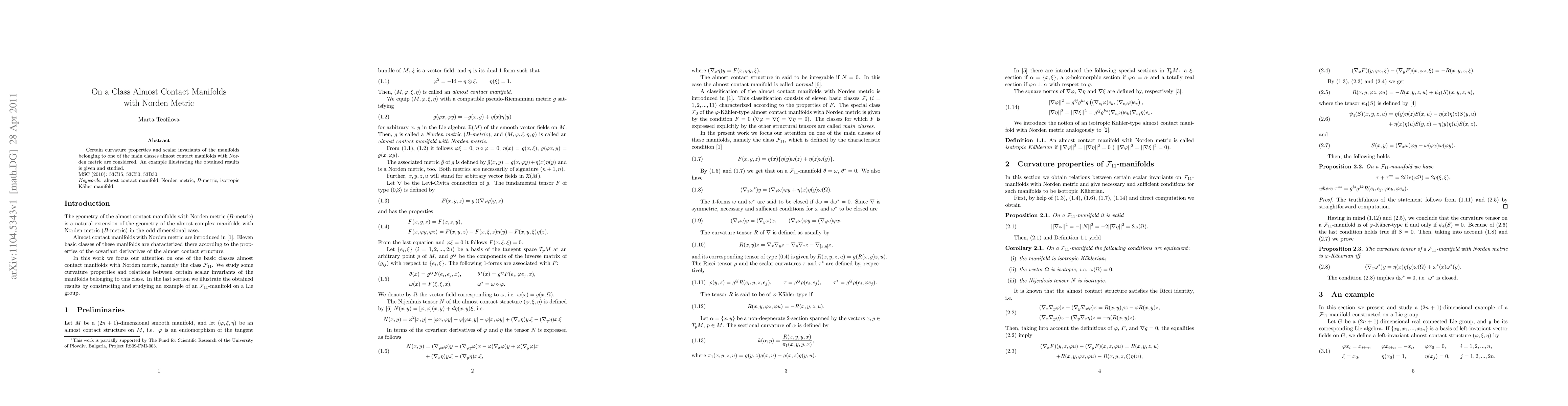 This paper examines curvature properties and scalar invariants of almost contact manifolds equipped with a Norden metric, highlighting specific examples to illustrate the findings. The study focuses on the geometric characteristics of these manifolds.