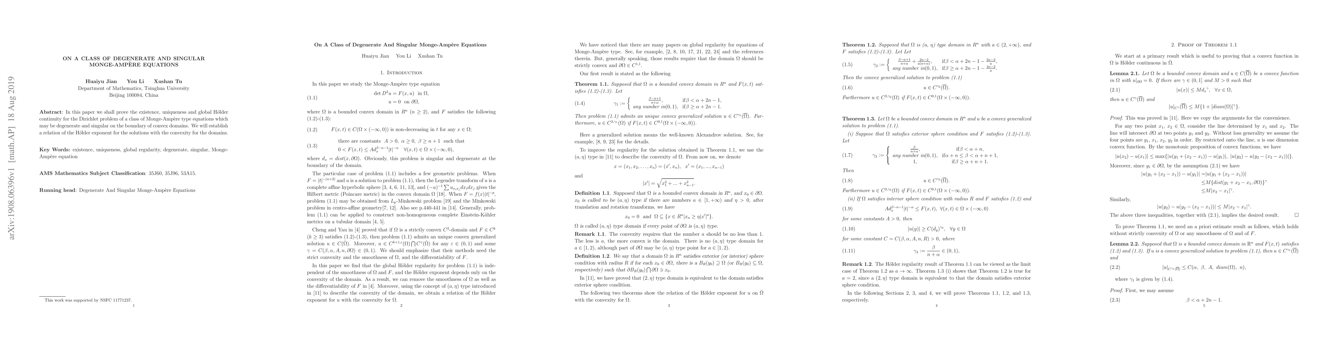 Researchers prove existence, uniqueness, and global Hôlder continuity for a class of Monge-Ampêre equations that may be degenerate and singular on convex domain boundaries, establishing a relationship between solution Hôlder exponent and domain convexity.