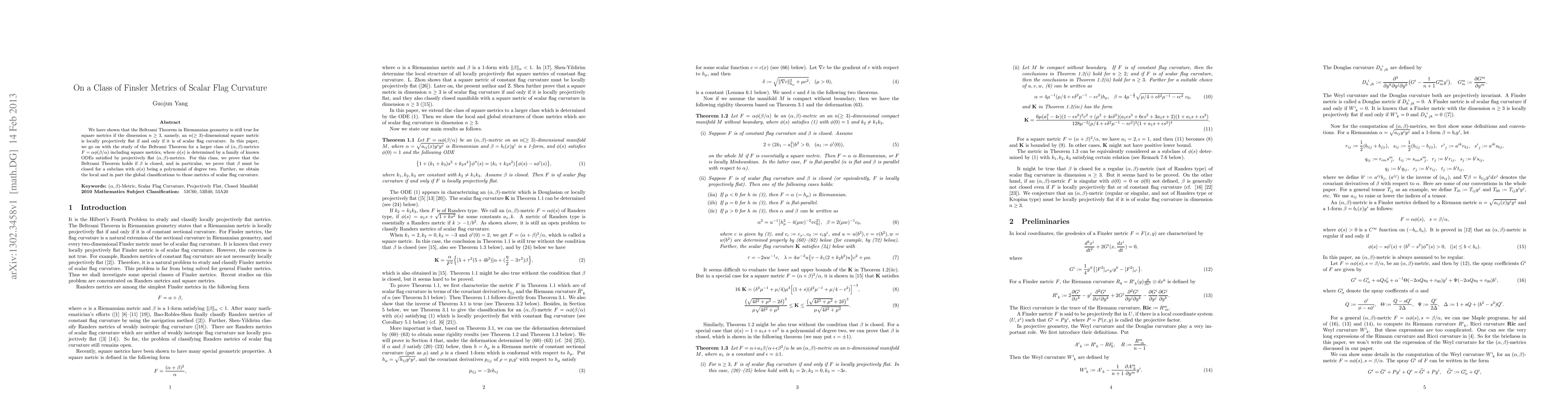 This paper extends the Beltrami Theorem to a class of $(\alpha,\beta)$-Finsler metrics, proving its validity under certain conditions, and provides classifications for metrics with scalar flag curvature, particularly when $\beta$ is closed and $\phi(s)$ is a polynomial of degree two.