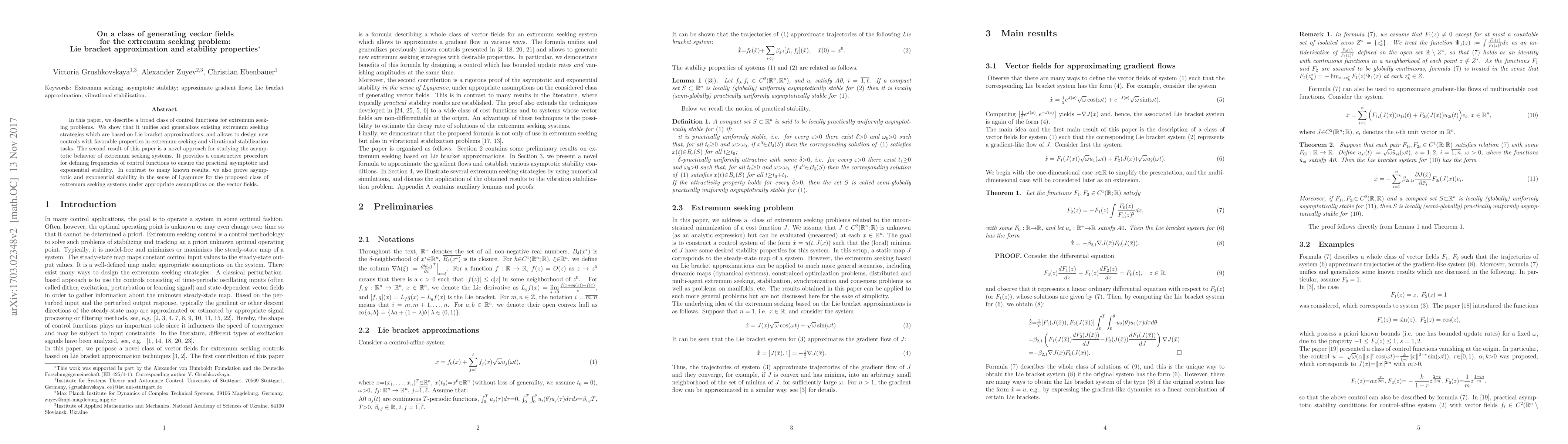 In this paper, we describe a broad class of control functions for extremum seeking problems. We show that it unifies and generalizes existing extremum seeking strategies which are based on Lie bracket approximations, and allows to design new controls with favorable properties in extremum seeking and vibrational stabilization tasks. The second result of this paper is a novel approach for studying the asymptotic behavior of extremum seeking systems. It provides a constructive procedure for defining frequencies of control functions to ensure the practical asymptotic and exponential stability. In contrast to many known results, we also prove asymptotic and exponential stability in the sense of Lyapunov for the proposed class of extremum seeking systems under appropriate assumptions on the vector fields.
