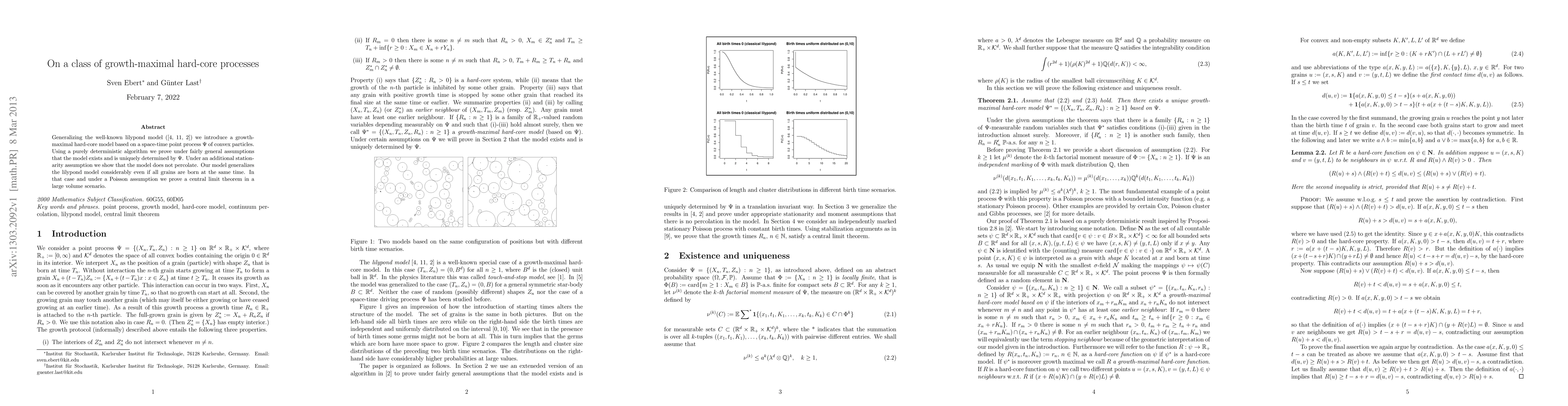 A new model for growth-maximal hard-core processes is introduced, which generalizes the lilypond model, and it has been proven to exist uniquely under certain assumptions. The model does not percolate under an additional stationarity assumption.