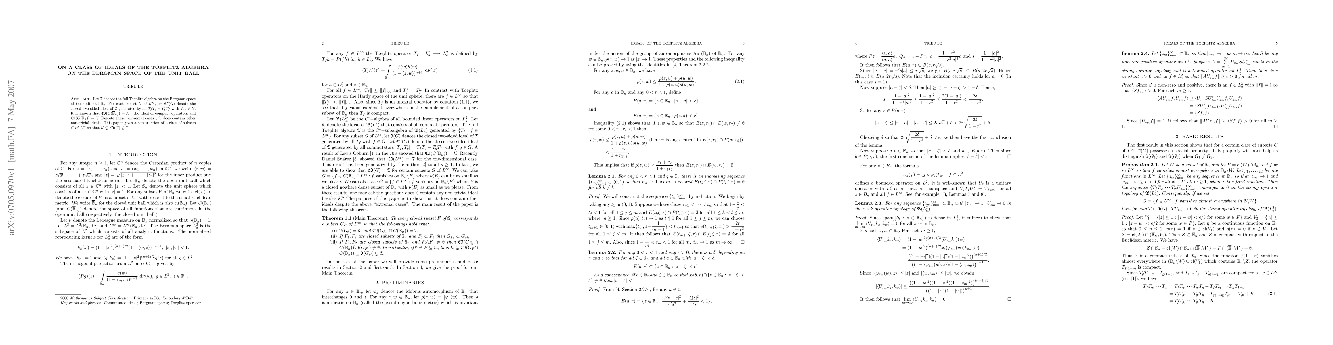 Let $\mathfrak{T}$ denote the full Toeplitz algebra on the Bergman space of the unit ball $\mathbb{B}_n.$ For each subset $G$ of $L^{\infty},$ let $\mathfrak{CI}(G)$ denote the closed two-sided ideal of $\mathfrak{T}$ generated by all $T_fT_g-T_gT_f$ with $f,g\in G.$ It is known that $\mathfrak{CI}(C(\bar{\mathbb{B}}_n))=\mathcal{K}$ - the ideal of compact operators and $\mathfrak{CI}(C(\mathbb{B}_n))=\mathfrak{T}.$ Despite these ``extremal cases'', $\mathfrak{T}$ does contain other non-trivial ideals. This paper gives a construction of a class of subsets $G$ of $L^{\infty}$ so that $\mathcal{K}\subsetneq\mathfrak{CI}(G)\subsetneq\mathfrak{T}.$