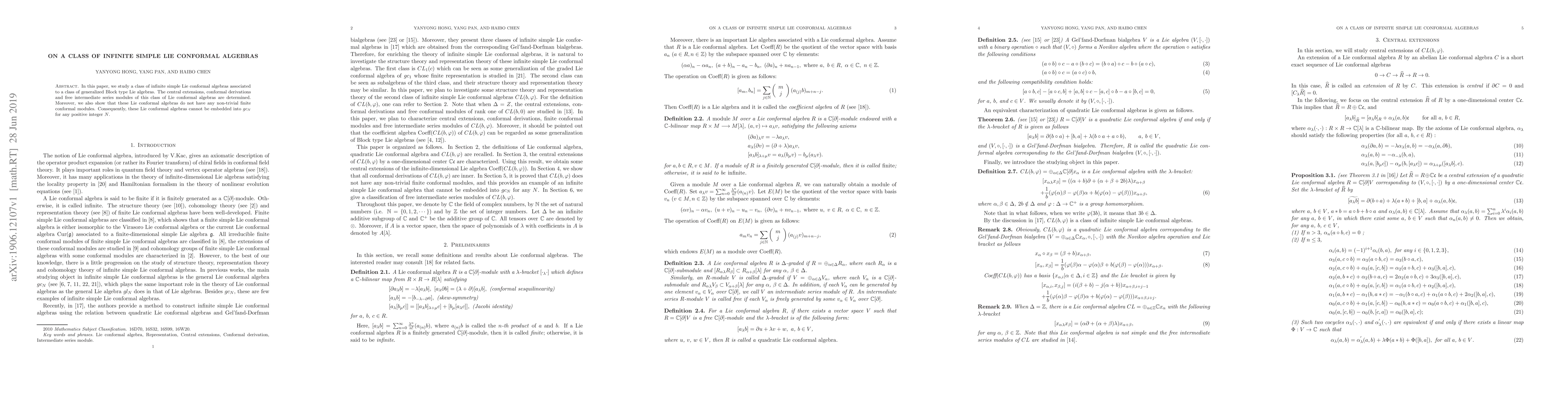 This paper investigates a class of infinite simple Lie conformal algebras derived from generalized Block type Lie algebras, determining their central extensions, conformal derivations, and free intermediate series modules. It concludes that these algebras lack non-trivial finite conformal modules and cannot be embedded in $gc_N$ for any positive integer $N$.