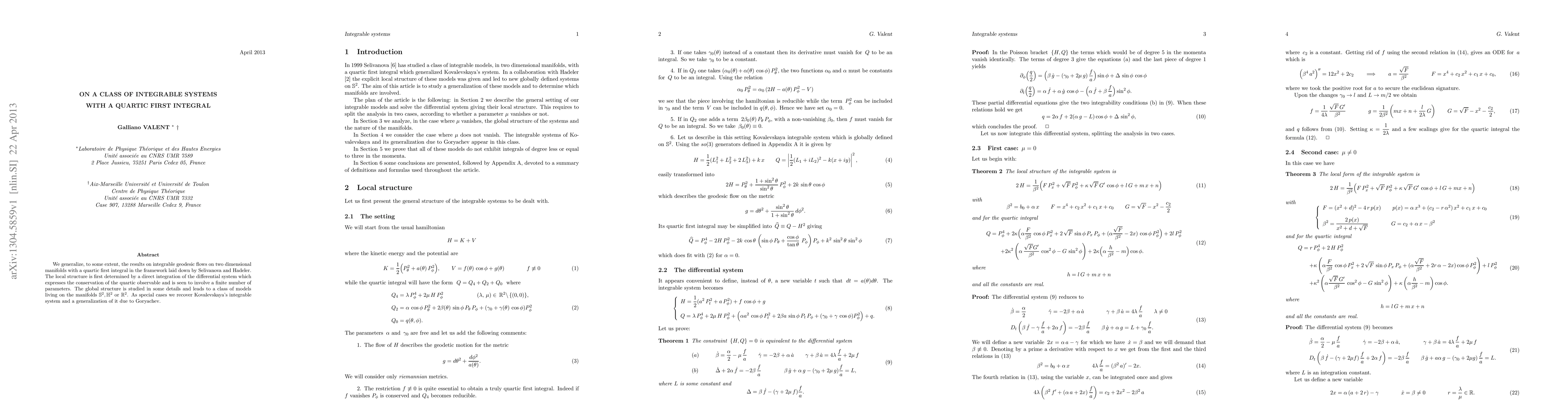 This paper generalizes integrable geodesic flows on two-dimensional manifolds with a quartic first integral, determining local structure through direct integration and exploring global structure on manifolds S^2, H^2, or R^2. Special cases include Kovalevskaya's system and a Goryachev generalization.