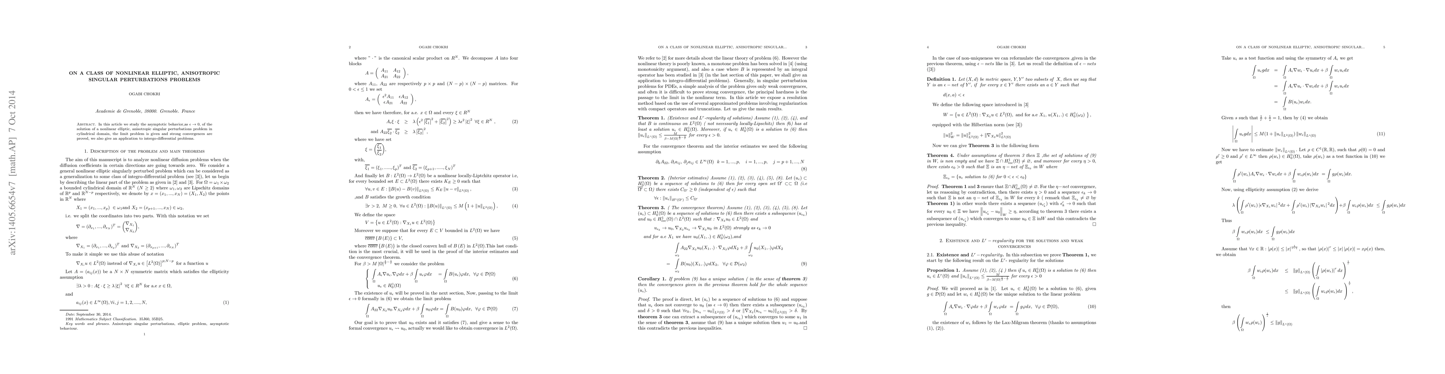 This paper investigates the asymptotic behavior of solutions to nonlinear elliptic, anisotropic singular perturbation problems in cylindrical domains, proving strong convergences for the limit problem and applying the results to intergo-differential problems.