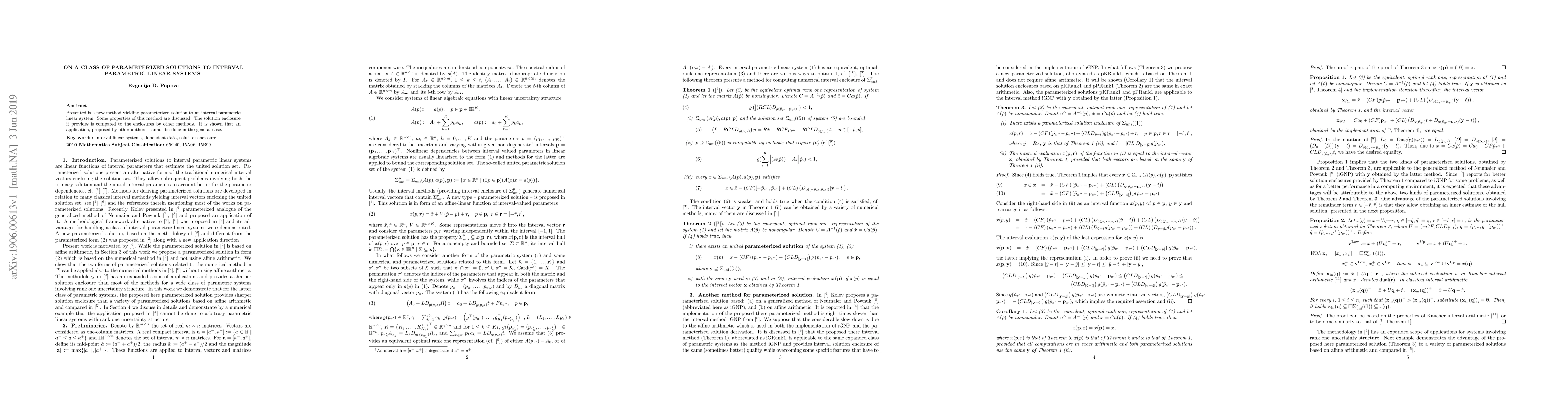 A new method provides parameterized solutions to interval parametric linear systems, offering a solution enclosure that is compared to others, but with limitations on its applicability in the general case.