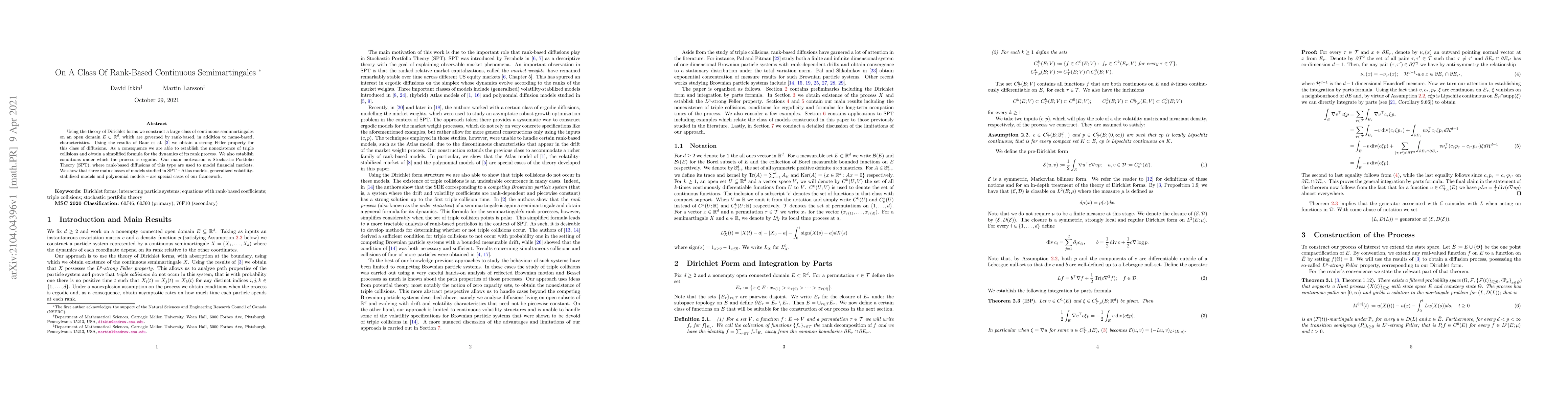 This paper introduces a class of continuous semimartingales governed by rank-based characteristics, showing strong Feller property, nonexistence of triple collisions, and conditions for ergodicity, with implications for Stochastic Portfolio Theory.