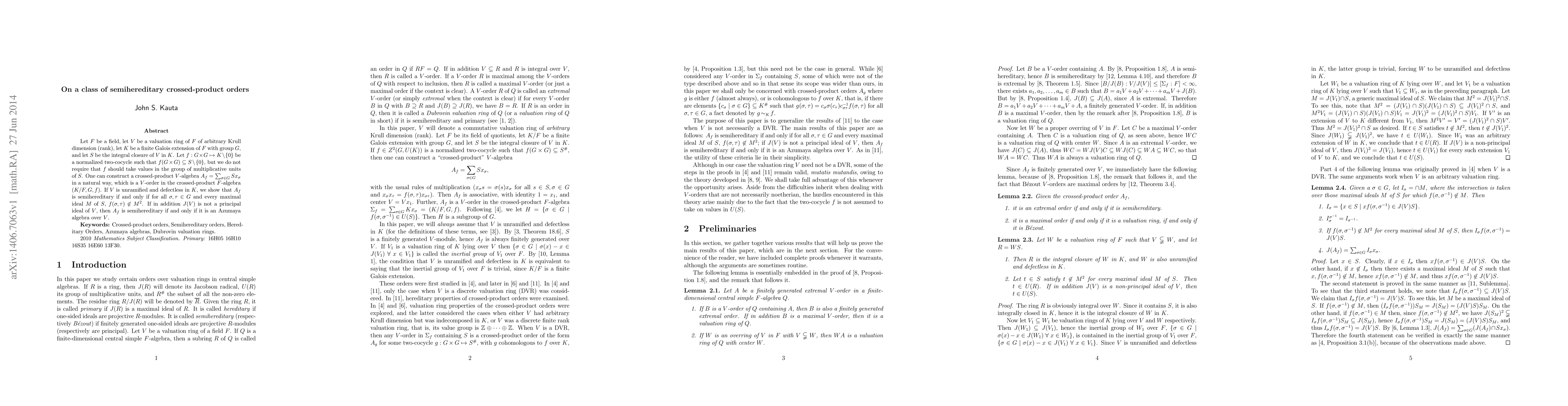 Let $F$ be a field, let $V$ be a valuation ring of $F$ of arbitrary Krull dimension (rank), let $K$ be a finite Galois extension of $F$ with group $G$, and let $S$ be the integral closure of $V$ in $K$. Let $f:G\times G\mapsto K\setminus \{0\}$ be a normalized two-cocycle such that $f(G\times G)\subseteq S\setminus \{0\}$, but we do not require that $f$ should take values in the group of multiplicative units of $S$. One can construct a crossed-product $V$-algebra $A_f=\sum_{\sigma\in G}Sx_{\sigma}$ in a natural way, which is a $V$-order in the crossed-product $F$-algebra $(K/F,G,f)$. If $V$ is unramified and defectless in $K$, we show that $A_f$ is semihereditary if and only if for all $\sigma,\tau\in G$ and every maximal ideal $M$ of $S$, $f(\sigma,\tau)\not\in M^2$. If in addition $J(V)$ is not a principal ideal of $V$, then $A_f$ is semihereditary if and only if it is an Azumaya algebra over $V$.