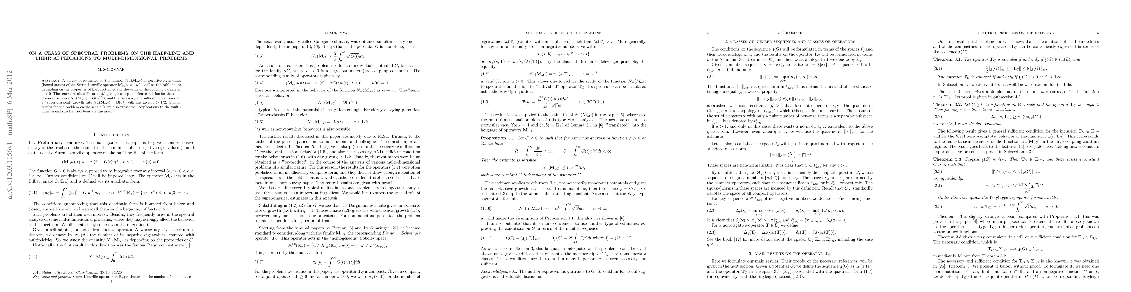 A survey of estimates on the number $N_-(\BM_{\a G})$ of negative eigenvalues (bound states) of the Sturm-Liouville operator $\BM_{\a G}u=-u"-\a G$ on the half-line, as depending on the properties of the function $G$ and the value of the coupling parameter $\a>0$. The central result is \thmref{S1/2a} giving a sharp sufficient condition for the semi-classical behavior $N_-(\BM_{\a G})=O(\a^{1/2})$, and the necessary and sufficient conditions for a "super-classical" growth rate $N_-(\BM_{\a G})=O(\a^q)$ with any given $q>1/2$. Similar results for the problem on the whole $\R$ are also presented. Applications to the multi-dimensional spectral problems are discussed.