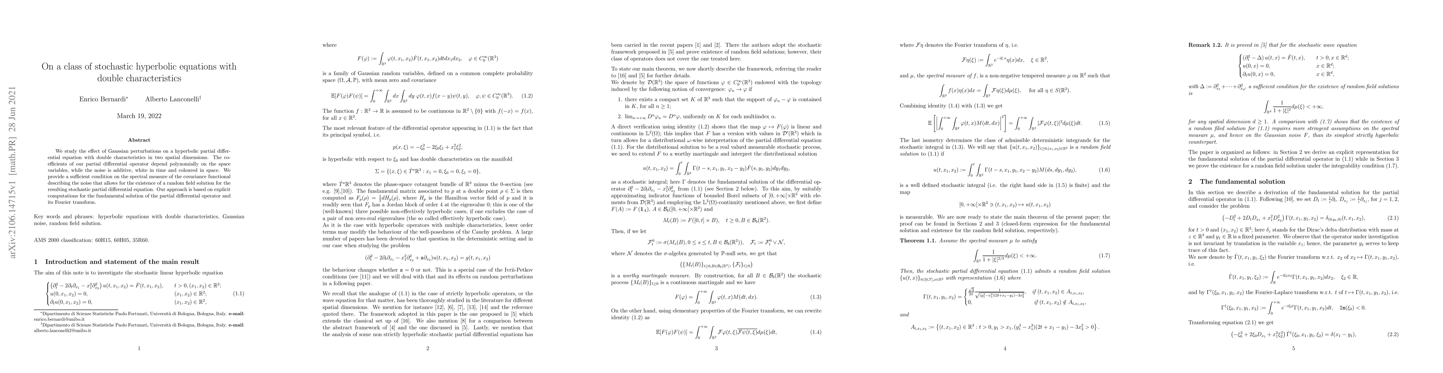 This paper studies how Gaussian perturbations affect a hyperbolic partial differential equation with double characteristics in two spatial dimensions. It provides a condition for the existence of a random field solution based on the noise's spectral measure.