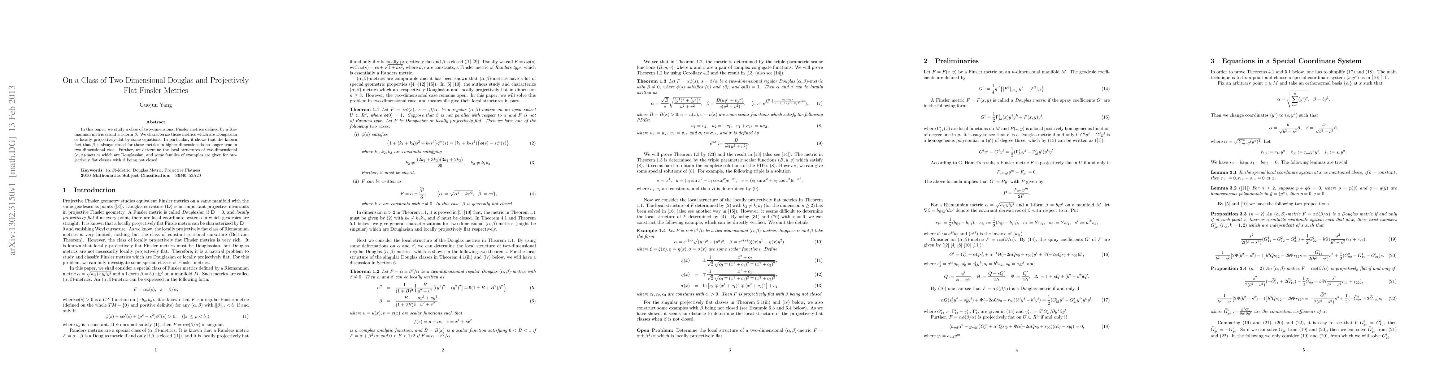 In this paper, we study a class of two-dimensional Finsler metrics defined by a Riemannian metric $\alpha$ and a 1-form $\beta$. We characterize those metrics which are Douglasian or locally projectively flat by some equations. In particular, it shows that the known fact that $\beta$ is always closed for those metrics in higher dimensions is no longer true in two dimensional case. Further, we determine the local structures of two-dimensional $(\alpha,\beta)$-metrics which are Douglassian, and some families of examples are given for projectively flat classes with $\beta$ being not closed.