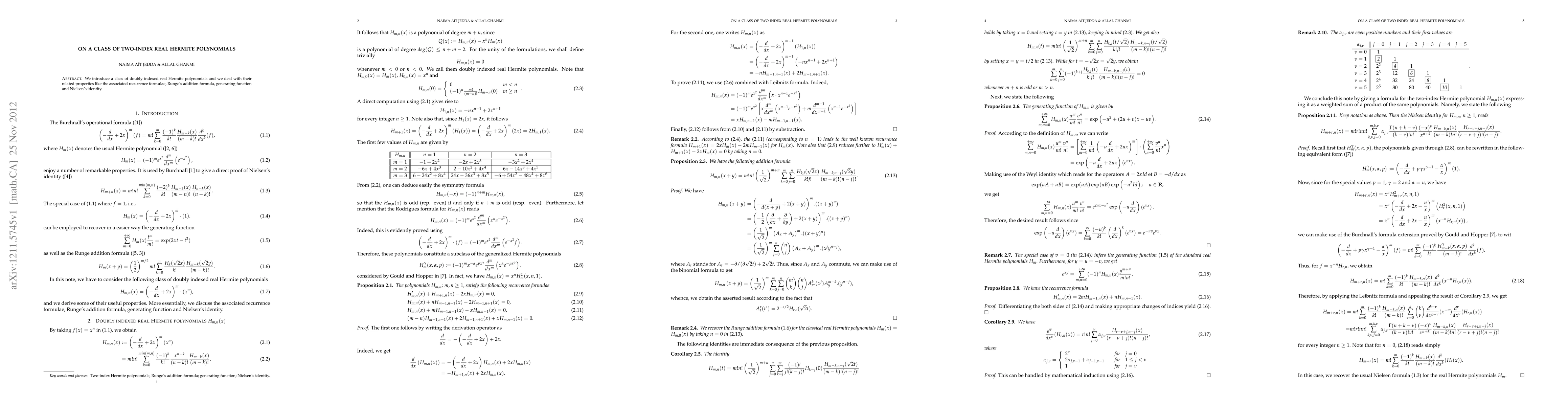 This work is novel because it generalizes the concept of Hermite polynomials to doubly indexed real polynomials and provides new formulas and identities for these polynomials.