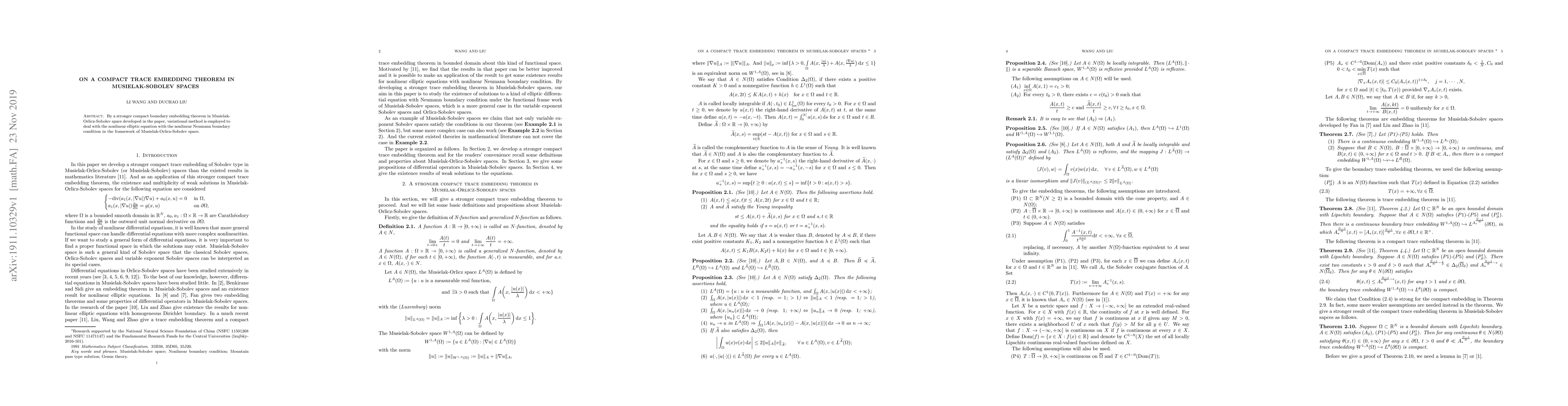 Summary: This paper establishes a compact trace embedding theorem in Musielak-Sobolev spaces and uses variational methods to address nonlinear elliptic equations with Neumann boundary conditions within this mathematical framework.