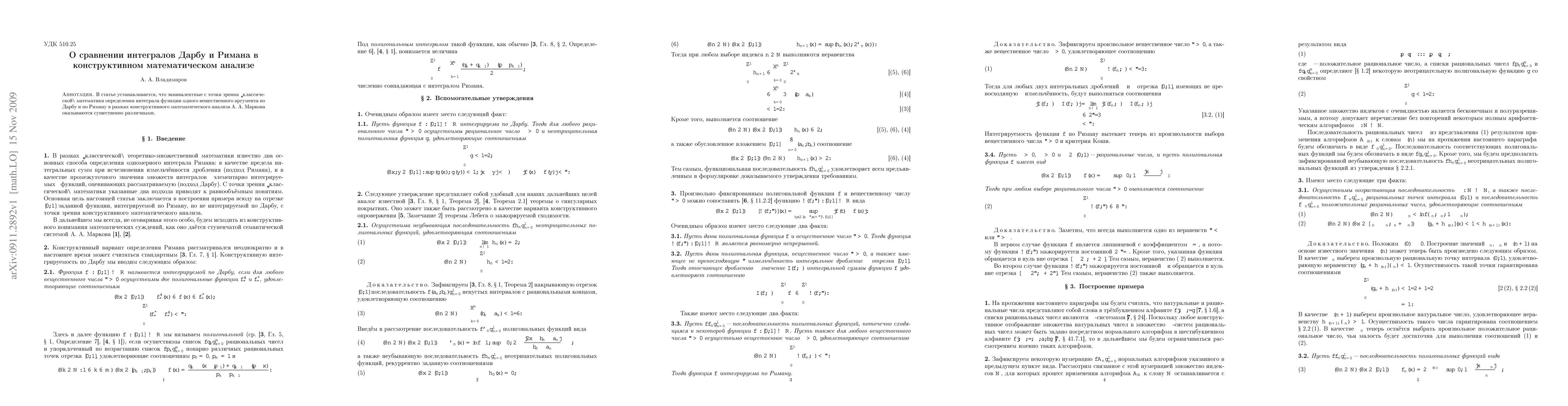 Summary: This paper constructs a real-valued function that is Riemann integrable but not Darboux integrable within the framework of constructive analysis, as defined by Markov. It highlights the differences between these two integration methods in a constructive context.