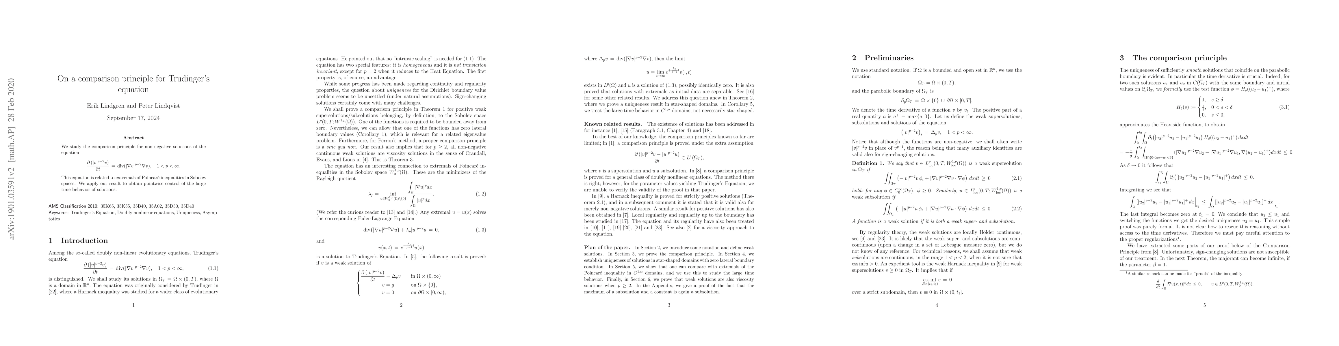 We study the comparison principle for non-negative solutions of the equation $$ \frac{\partial\,(|v|^{p-2}v)}{\partial t}\,=\, \textrm{div} (|\nabla v|^{p-2}\nabla v), \quad 1