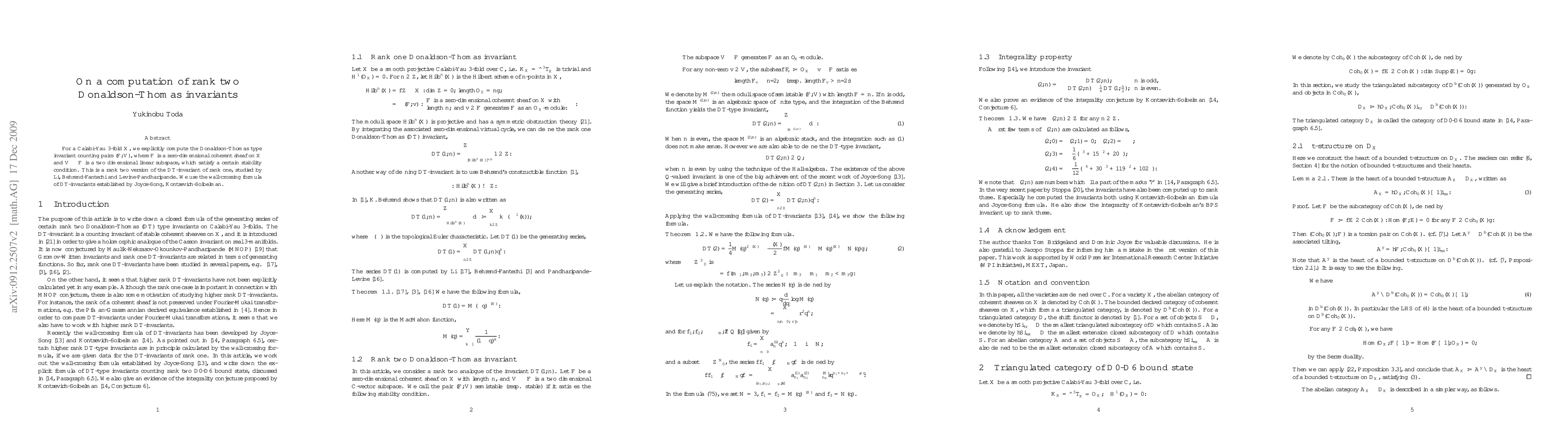 The paper computes the rank two Donaldson-Thomas invariants for zero-dimensional coherent sheaves on a Calabi-Yau 3-fold $X$, counting pairs $(F, V)$ where $V$ is a two-dimensional linear subspace of $F$, using the established wall-crossing formula. This extends the rank one DT-invariants previously studied by Li, Behrend-Fantechi, and Levine-Pandharipande.