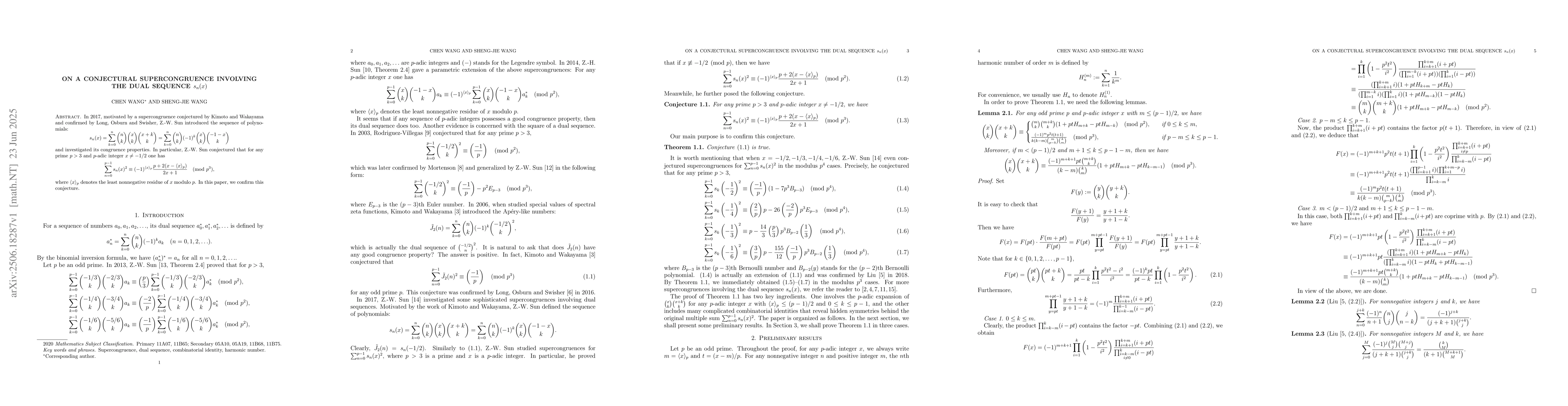 In 2017, motivated by a supercongruence conjectured by Kimoto and Wakayama and confirmed by Long, Osburn and Swisher, Z.-W. Sun introduced the sequence of polynomials: $$ s_n(x)=\sum_{k=0}^n\binom{n}{k}\binom{x}{k}\binom{x+k}{k}=\sum_{k=0}^n\binom{n}{k}(-1)^k\binom{x}{k}\binom{-1-x}{k} $$ and investigated its congruence properties. In particular, Z.-W. Sun conjectured that for any prime $p>3$ and $p$-adic integer $x\neq-1/2$ one has \begin{equation*} \sum_{n=0}^{p-1}s_n(x)^2\equiv (-1)^{\langle x\rangle_p}\frac{p+2(x-\langle x\rangle_p)}{2x+1}\pmod{p^3}, \end{equation*} where $\langle x\rangle_p$ denotes the least nonnegative residue of $x$ modulo $p$. In this paper, we confirm this conjecture.