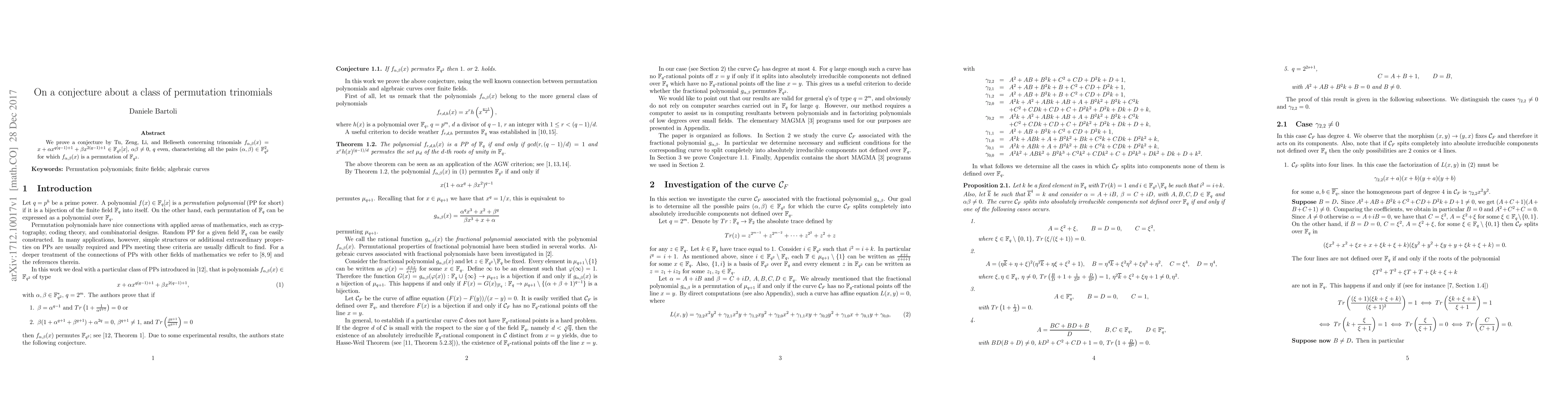 Researchers prove a conjecture about permutation trinomials, showing that specific pairs of parameters can result in a polynomial that permutes the elements of a finite field, providing insight into cryptographic applications.