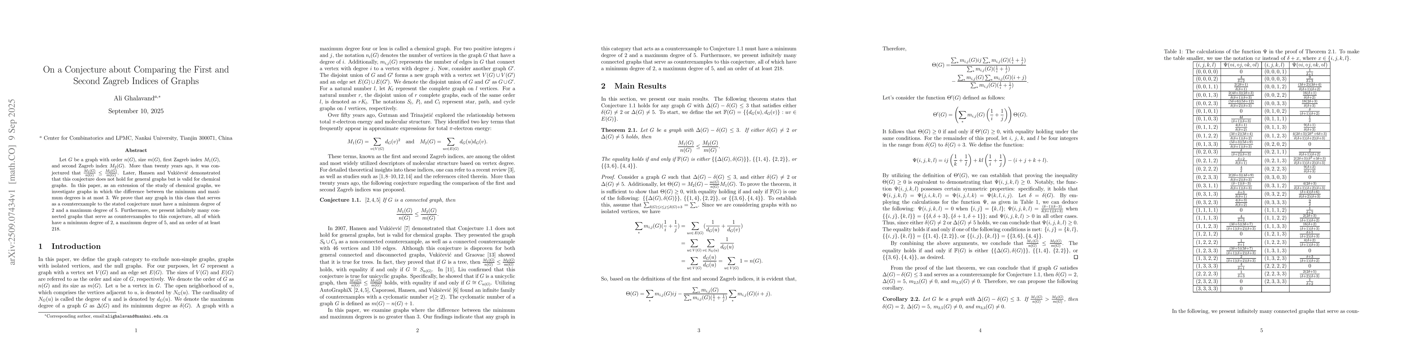 Let $G$ be a graph with order $n(G)$, size $m(G)$, first Zagreb index $M_1(G)$, and second Zagreb index $M_2(G)$. More than twenty years ago, it was conjectured that $\frac{M_1(G)}{n(G)} \leq \frac{M_2(G)}{m(G)}$. Later, Hansen and Vuki\v{c}evi\'c demonstrated that this conjecture does not hold for general graphs but is valid for chemical graphs. In this paper, as an extension of the study of chemical graphs, we investigate graphs in which the difference between the minimum and maximum degrees is at most $3$. We prove that any graph in this class that serves as a counterexample to the stated conjecture must have a minimum degree of $2$ and a maximum degree of $5$. Furthermore, we present infinitely many connected graphs that serve as counterexamples to this conjecture, all of which have a minimum degree of 2, a maximum degree of 5, and an order of at least 218.