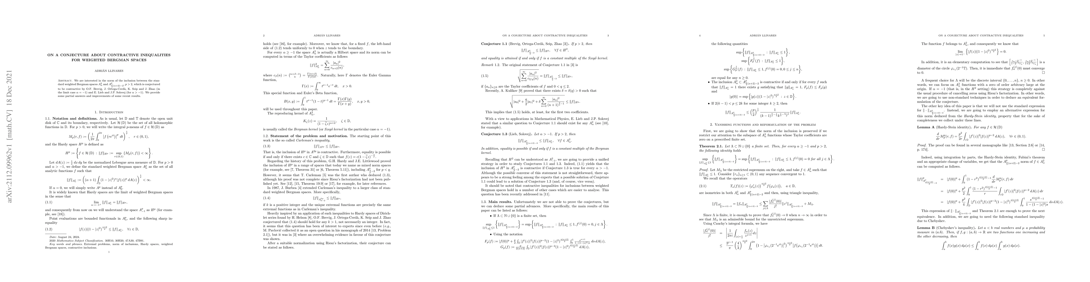 This paper investigates the conjecture regarding the contractive inequality for the norm of inclusion between specific weighted Bergman spaces, providing partial confirmations and improvements on recent results proposed by Brevig et al. and Lieb and Solovej.