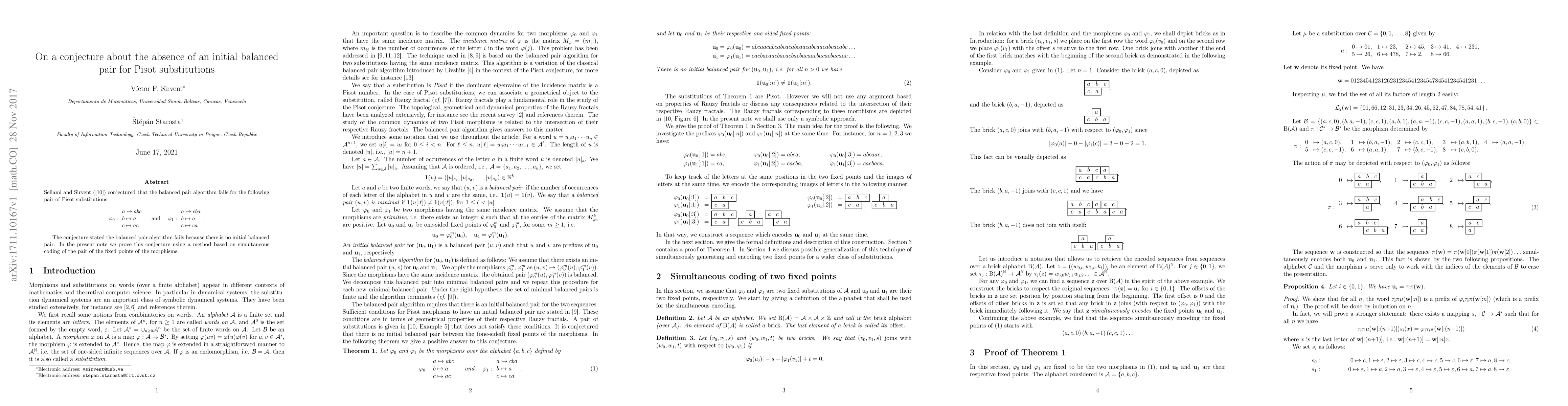 Sellami and Sirvent conjectured that the balanced pair algorithm fails for the following pair of Pisot substitutions: \[ \varphi_0: \begin{array}{l} a \mapsto abc b \mapsto a c \mapsto ac \end{array} \quad \text{ and } \quad \varphi_1: \begin{array}{l} a \mapsto cba b \mapsto a c \mapsto ca \end{array}. \] The conjecture stated the balanced pair algorithm fails because there is no initial balanced pair. In the present note we prove this conjecture using a method based on simultaneous coding of the pair of the fixed points of the morphisms.