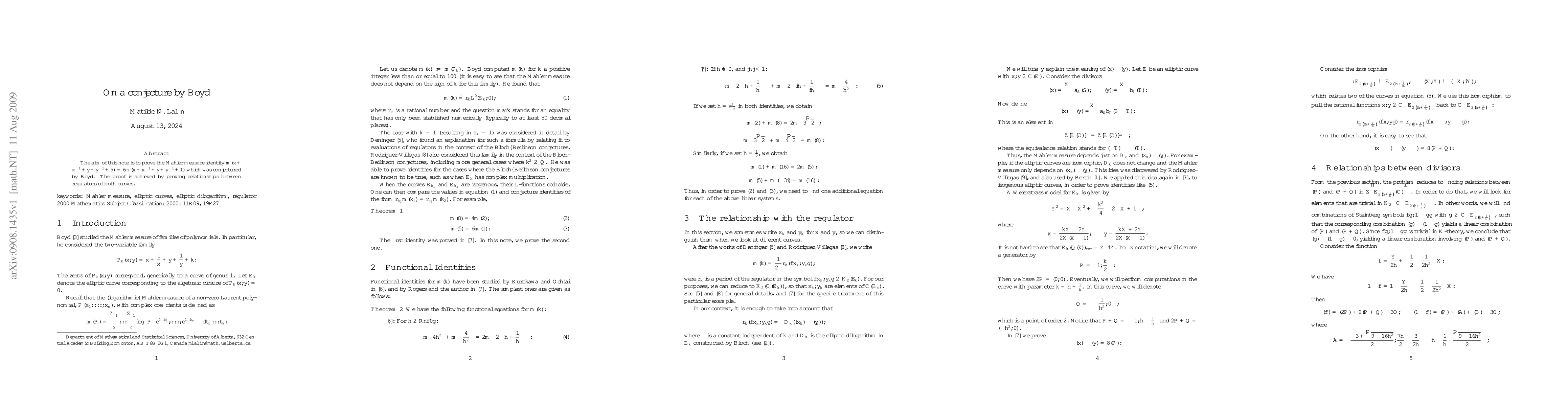 The aim of this note is to prove the Mahler measure identity $m(x+x^{-1}+y+y^{-1}+5) = 6 m(x+x^{-1}+y+y^{-1}+1)$ which was conjectured by Boyd. The proof is achieved by proving relationships between regulators of both curves.